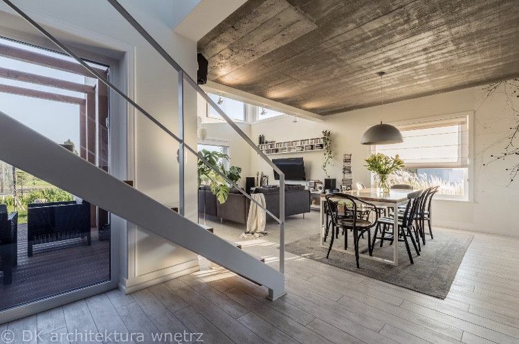 Funkcjonalny układ pomieszczeń, z wyraźnym podziałem na część dzienną i prywatną